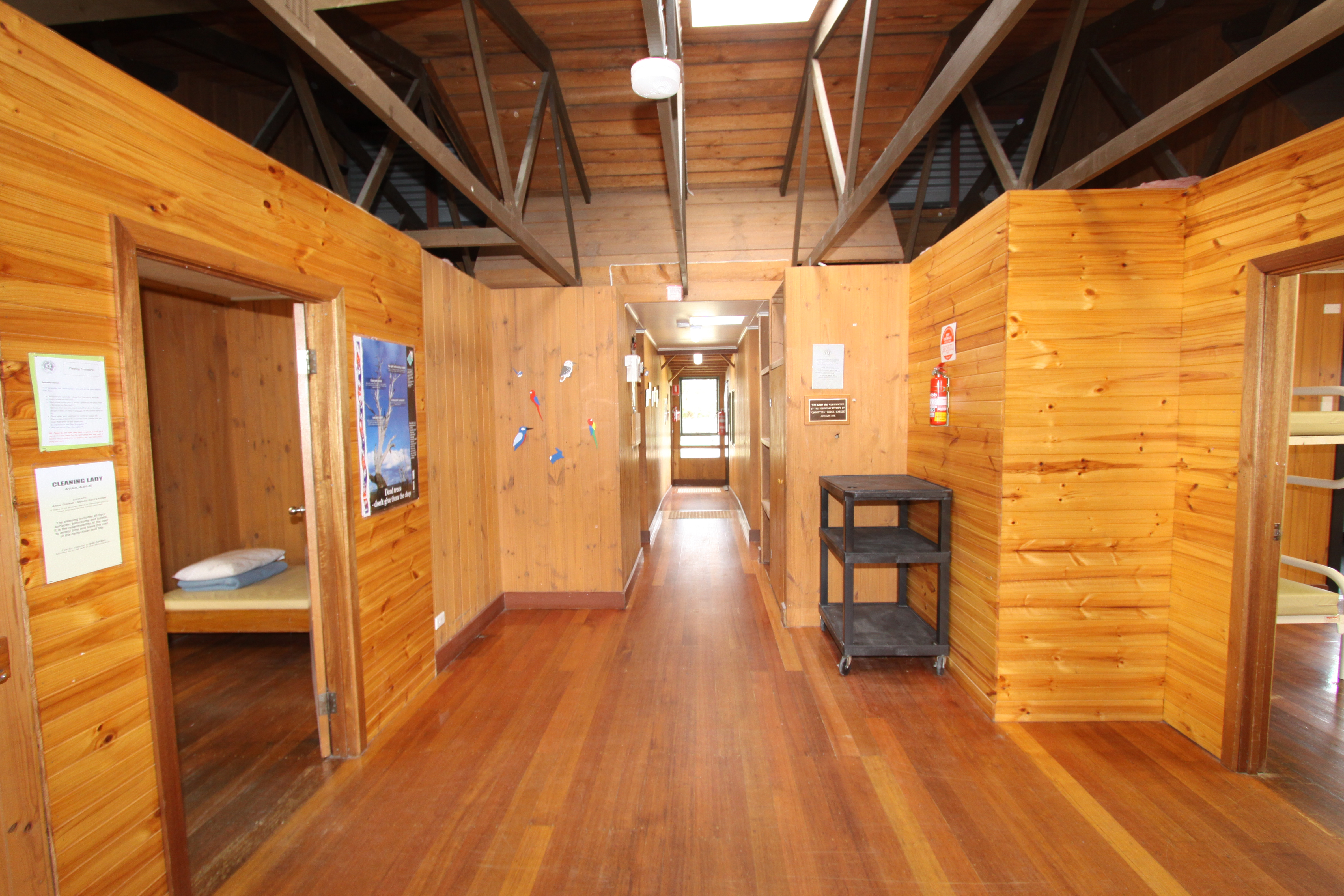 The camp has a combined kitchen, dining and lounge area, dormitory accommodation for up to fifteen campers and staff rooms for four.